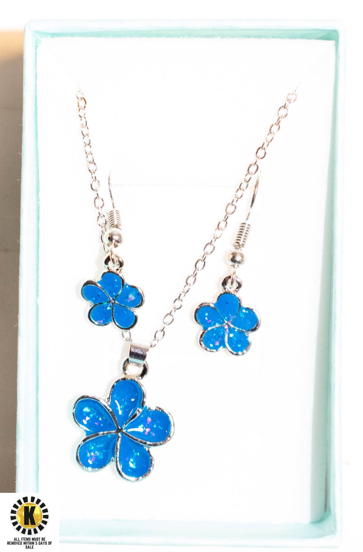 NEW SILVER PLATED EARRING NECKLACE SET WITH INLAY