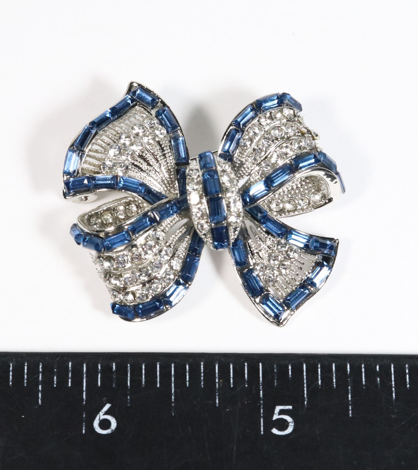 NEW SILVER TONE BLUE AND CLEAR RHINESTONE BROOCH