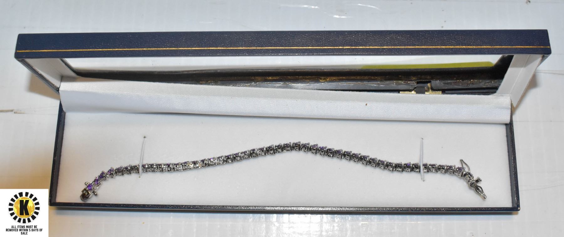 NEW SILVER TONE BRACELET WITH PURPLE ACCENT STONES