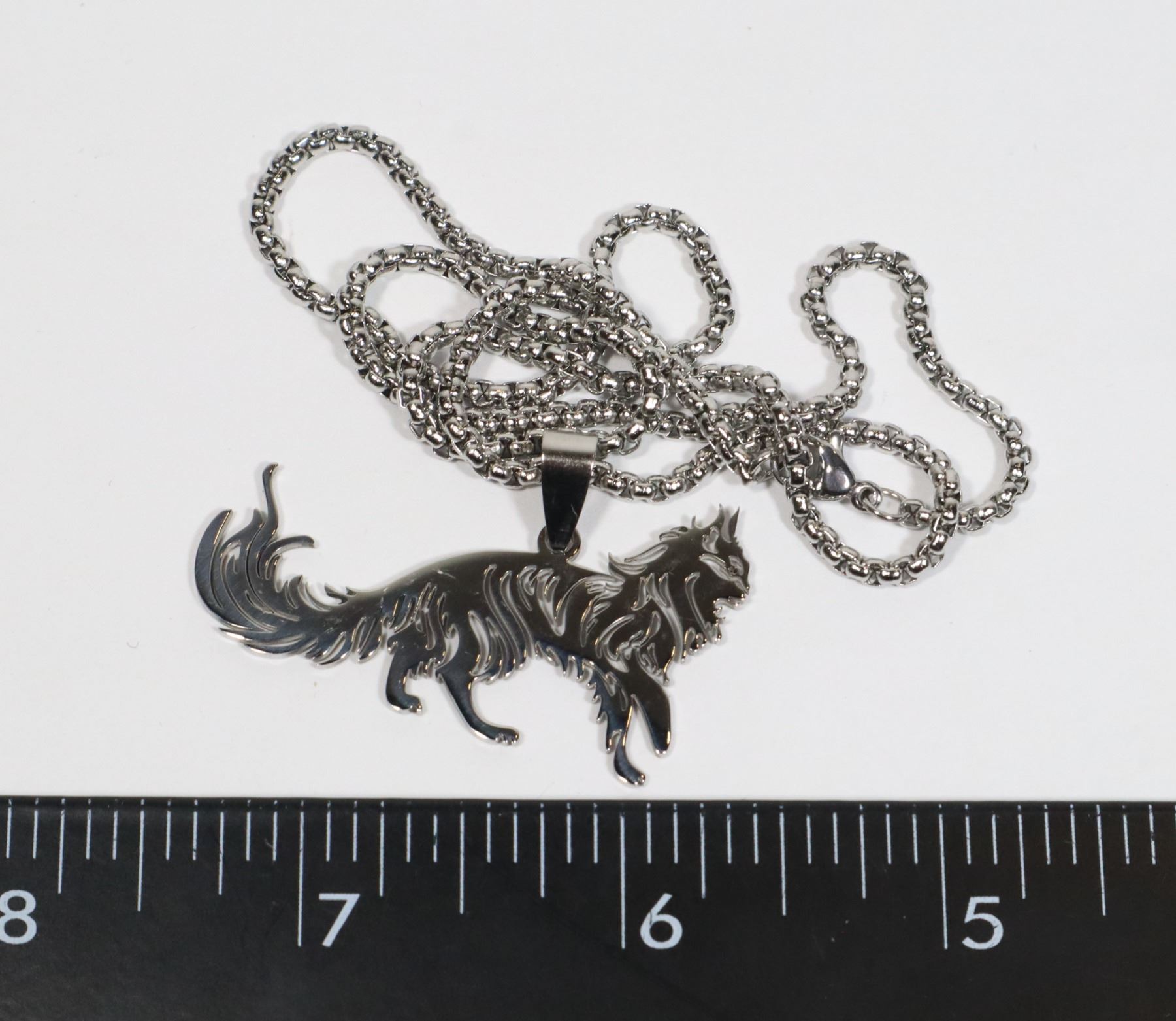 NEW SILVER TONE CAT PENDANT AND CHAIN