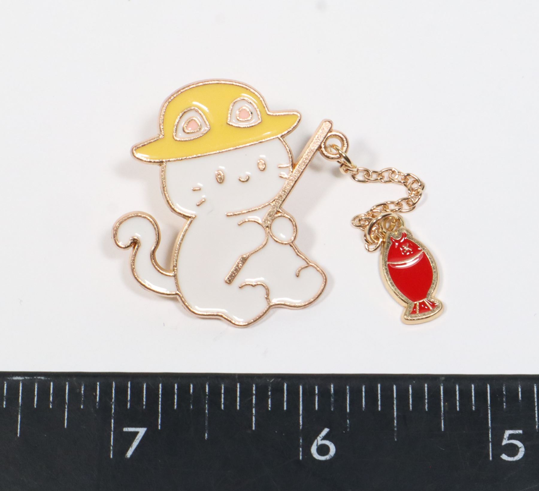 NEW SITTING FISHING CAT IN A YELLOW HAT BROOCH