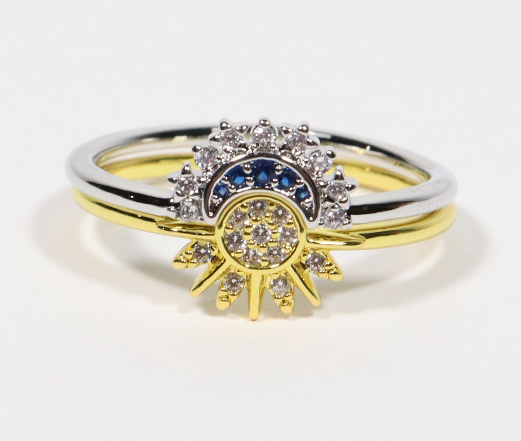 NEW SIZE 11 CUBIC ZIRCONIA INLAID SUN AND MOON