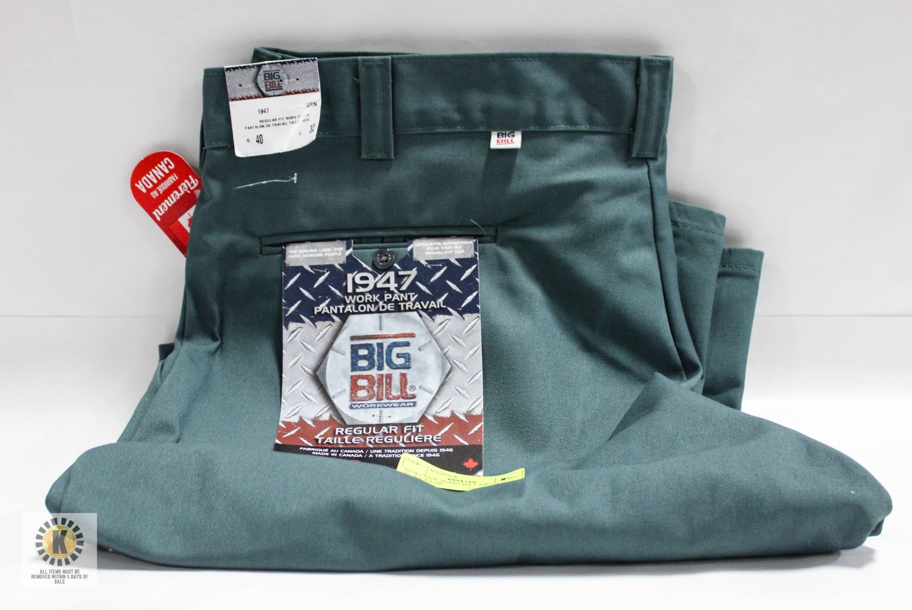 PANTS MADE IN CANADA-ESTATE **ALL ITEMS MUST BE REMOVED BY 5PM SATURDAY, MARCH 15TH 2025. ALL REMAINING ITEMS WILL BE SUBJECT TO A $6.00 PER DAY STORAGE CHARGE. ANY ITEMS REMAINING AFTER MONDAY, MARCH 31ST 2025 WILL BE CONSIDERED FORFEITED. NO REFUNDS WILL BE ISSUED FOR FORFEITED ITEMS. TO SCHEDULE A PICK UP APPOINTMENT CLICK HERE
