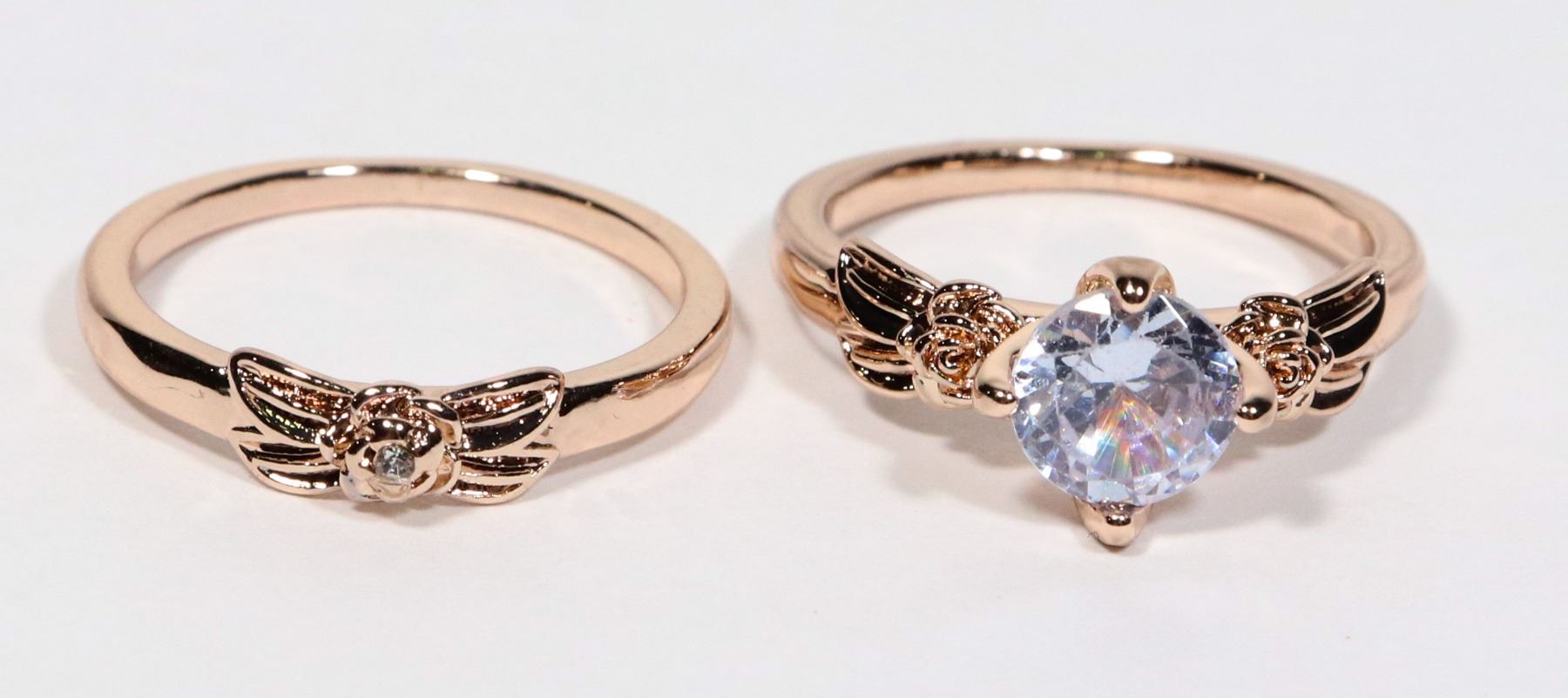 NEW SIZE 7 2PC ROSE GOLD TONE ROSE DESIGN RING