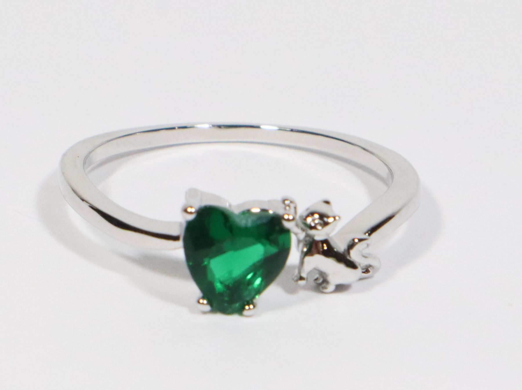 NEW SIZE 7 CAT WITH GREEN RHINESTONE HEART