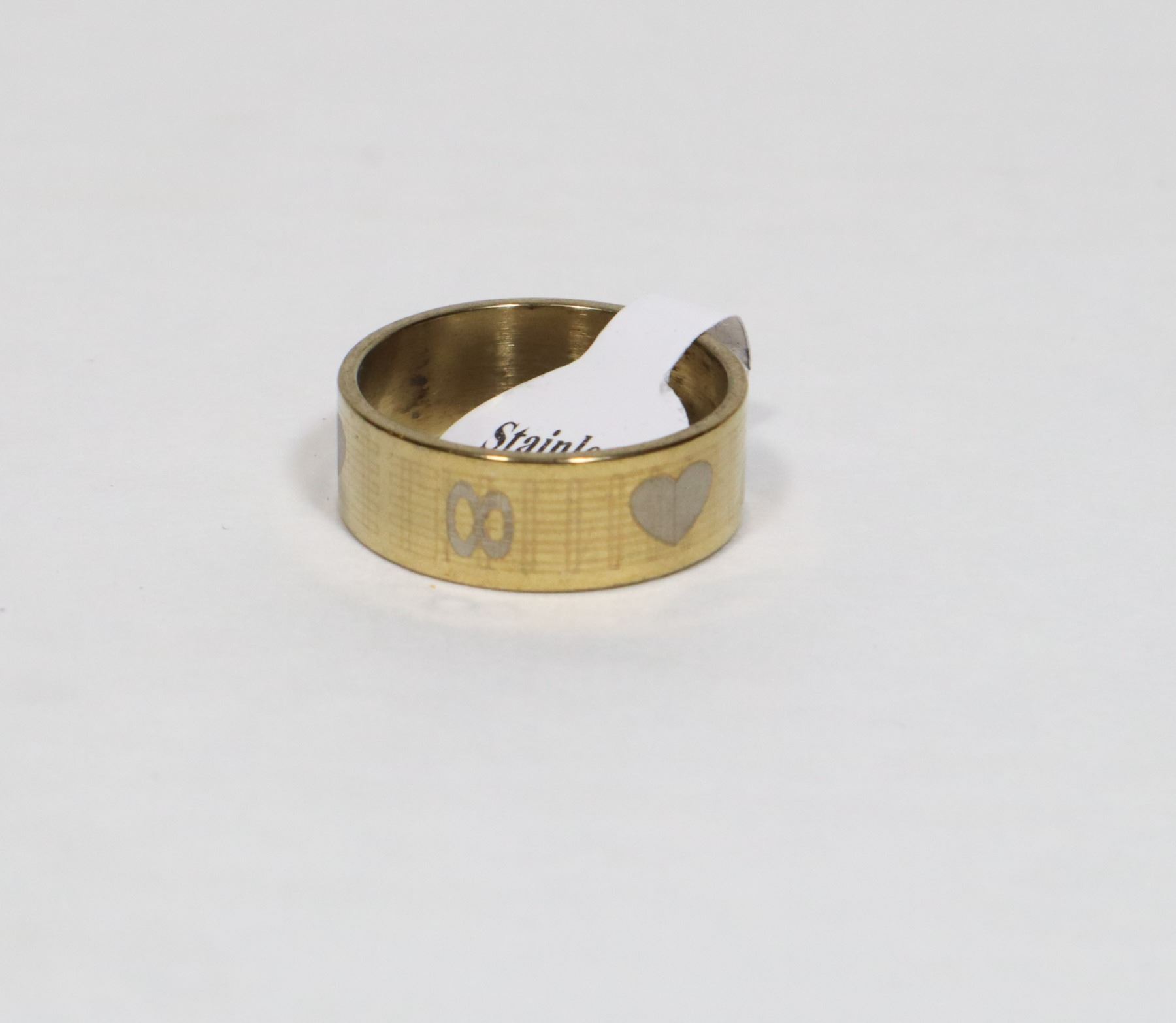 NEW SIZE 8 GOLD TONE HEART DESIGN STAINLESS STEEL