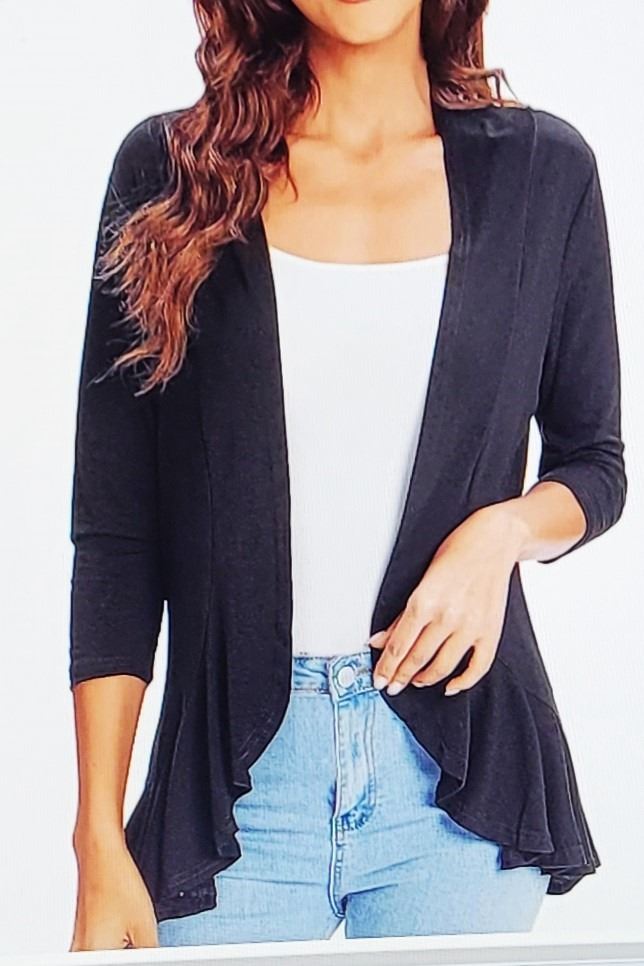 NEW SIZE M BLACK SHRUG WITH RUFFLE HEM,