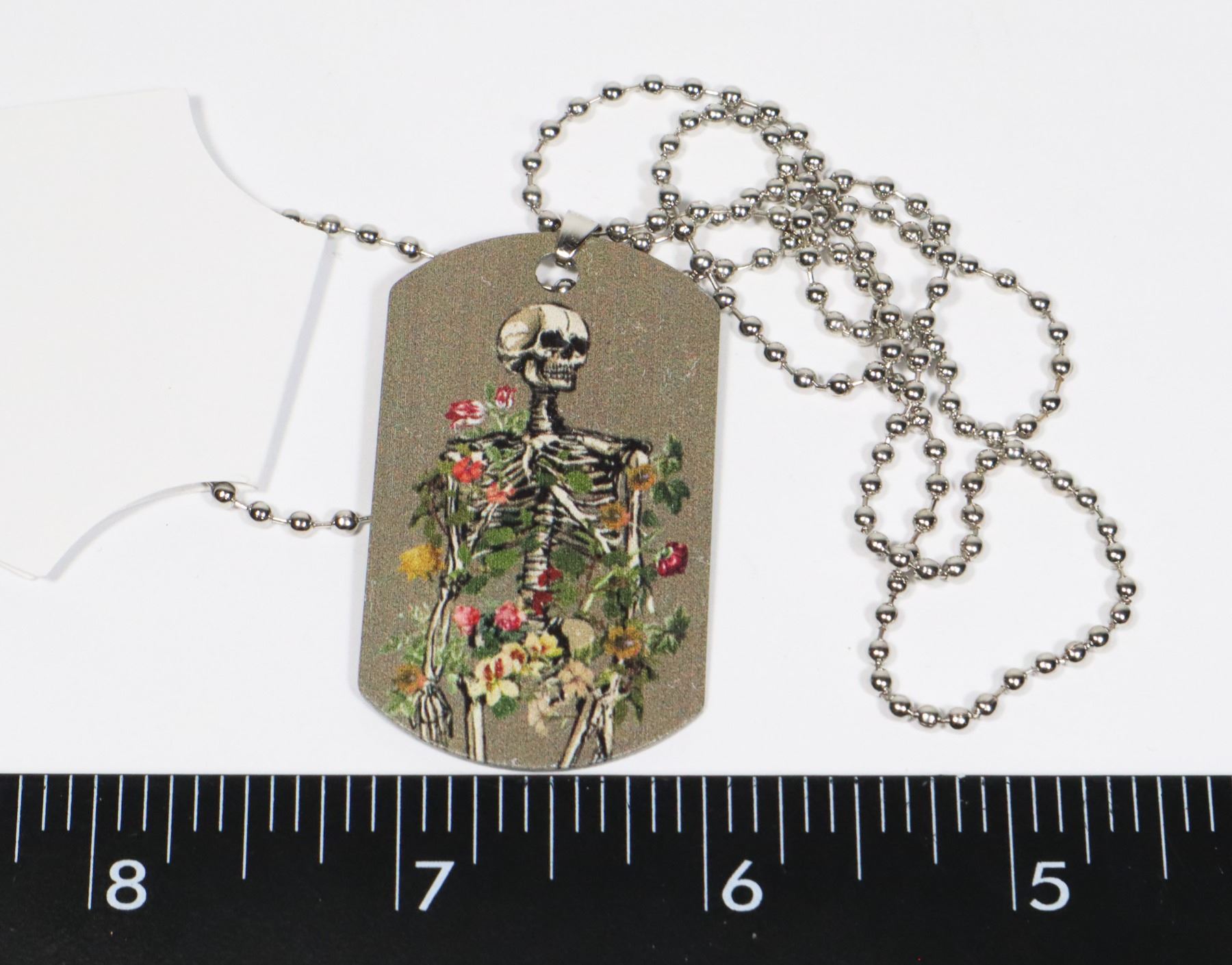 NEW SKULL WITH FLOWER DOG TAG AND CHAIN