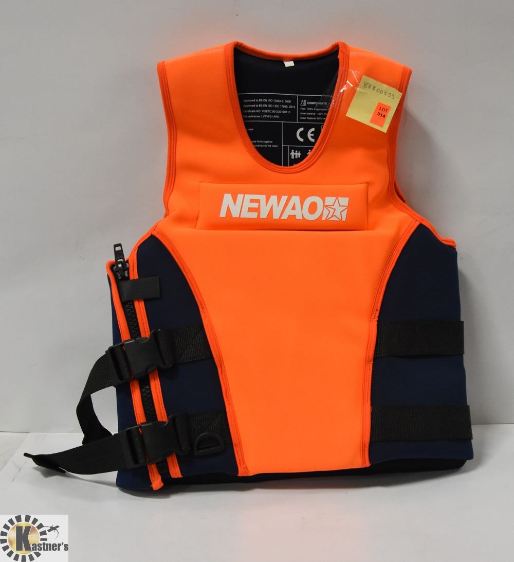 LIGHTWEIGHT, WATER SPORTS LIFE VEST, ORANGE AND DARK BLUE