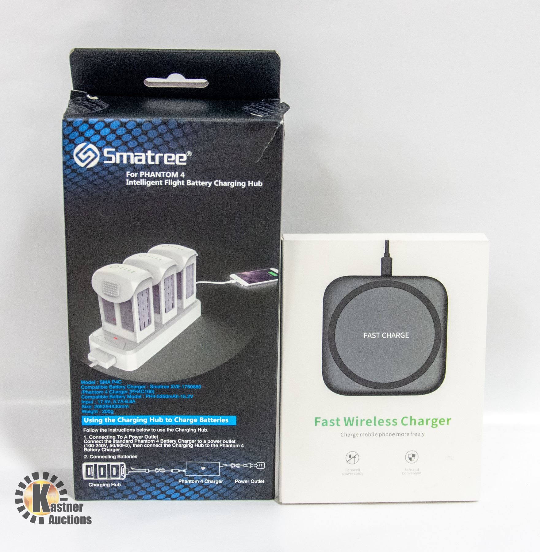 CHARGING HUB FOR BATTERIES W/NEW FAST WIRELESS CHARGING MOBILE PHONE PAD **ALL ITEMS MUST BE REMOVED BY 5PM SATURDAY, JULY 15TH 2023. ALL REMAINING ITEMS WILL BE SUBJECT TO A $6.00 PER DAY STORAGE CHARGE. ANY ITEMS REMAINING AFTER MONDAY, JULY 31ST, 2023 WILL BE CONSIDERED FORFEITED. NO REFUNDS WILL BE ISSUED FOR FORFEITED ITEMS. TO SCHEDULE A PICK UP APPOINTMENT CLICK HERE