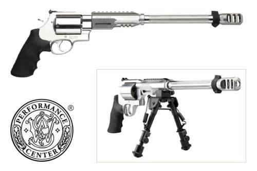 FAMILY:Performance Center MODEL:460 Hunter TYPE:Revolver ACTION:Double / Single Action FINISH:Stainless STOCK/FRAME:Steel Frame STOCK/GRIPS:Rubber Grips CALIBER/GAUGE:460 S&W Magnum CAPACITY:5 BARREL:14" SIGHTS:Adjustable