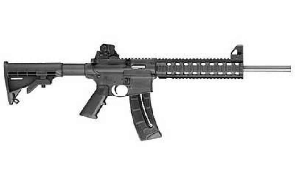 Mfr Items:Smith & Wesson Category:TACTICAL RIFLES Metal Finish:Black Action:Semi-Automatic Caliber:22 Long Rifle Barrel Length:16.0" Capacity:25+1 Trigger:Standard Safety:Lever OAL:30.5"-33.75" Weight:5.5 lbs Stock Description:6-Position Black Muzzle:No Muzzle Device Receiver Material:Polymer Sights:A2 Post Front, Dual Aperture Rear Barrel Description:Carbon Steel Twist:1:15" Hand:Right Stock Finish Group:Synthetic Metal Finish Group:Blued/Black