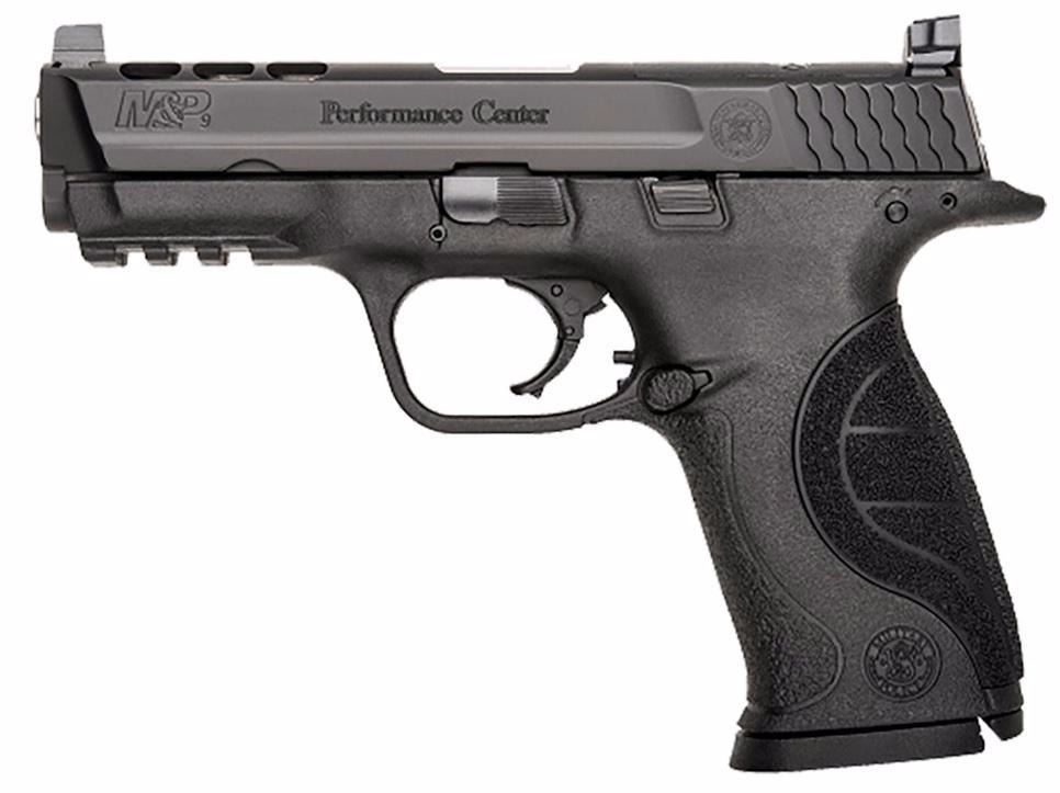 Mfr Items:Smith & Wesson Category:PISTOLS Mfr Scan:SWMP Model:M&P Series:9 Performance Center Ported 9mm Action:Double Caliber:9mm Barrel Length:4.3" Capacity:15+1 Safety:Trigger Grips:Black Interchangeable Backstrap Sights:Dovetail Front, Fixed Rear Weight:23.4 oz Frame Finish:Black Frame Material:Stainless Steel Barrel Type:Stainless Steel