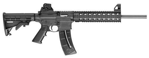 FAMILY:M&P Series MODEL:M&P15-22 TYPE:Rifle ACTION:Semi-Auto FINISH:Matte Black STOCK/FRAME:Collapsible / Folding Stock STOCK/GRIPS:6 Position Adjustable CALIBER/GAUGE:22 LR CAPACITY:25 BARREL:16" SIGHTS:Adjustable Front & Rear Sights ADDL INFO:Polymer Upper & Lower Receiver ADDL INFO:Quad Rail Handguard ADDL INFO:A3 Style Flat Top Upper