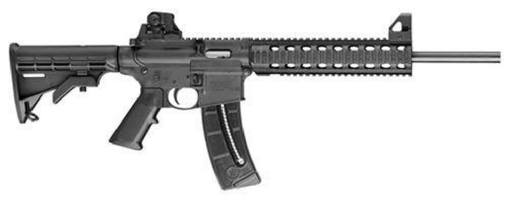 SM811030 PRODUCT DETAILS FAMILY:M&P Series MODEL:M&P15-22 TYPE:Rifle ACTION:Semi-Auto FINISH:Matte Black STOCK/FRAME:Collapsible / Folding Stock STOCK/GRIPS:6 Position Adjustable CALIBER/GAUGE:22 LR CAPACITY:25 BARREL:16" SIGHTS:Adjustable Front & Rear Sights ADDL INFO:Polymer Upper & Lower Receiver ADDL INFO:Quad Rail Handguard ADDL INFO:A3 Style Flat Top Upper