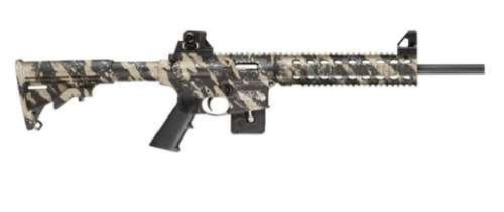 FAMILY:M&P Series MODEL:M&P15-22 Camo TYPE:Rifle ACTION:Semi-Auto FINISH:Tan & Black STOCK/FRAME:Synthetic Stock CALIBER/GAUGE:22 LR CAPACITY:10 Rd. BARREL:16.5" OVERALL LENGTH:33.75" RATE-OF-TWIST:1-