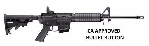Mfr Items:Smith & Wesson Category:TACTICAL RIFLES Action:Semi-Automatic Caliber:223 Remington/5.56 NATO Barrel Length:16.0" Capacity:10+1 Trigger:Standard Safety:Lever OAL:32"-35" Weight:6.5 lbs Stock Description:6-Position Black Metal Finish:Black Muzzle:A2 Flash Hider Receiver Material:Aluminum Sights:A2 Front, Magpul Rear Barrel Description:4140 Chrome Moly