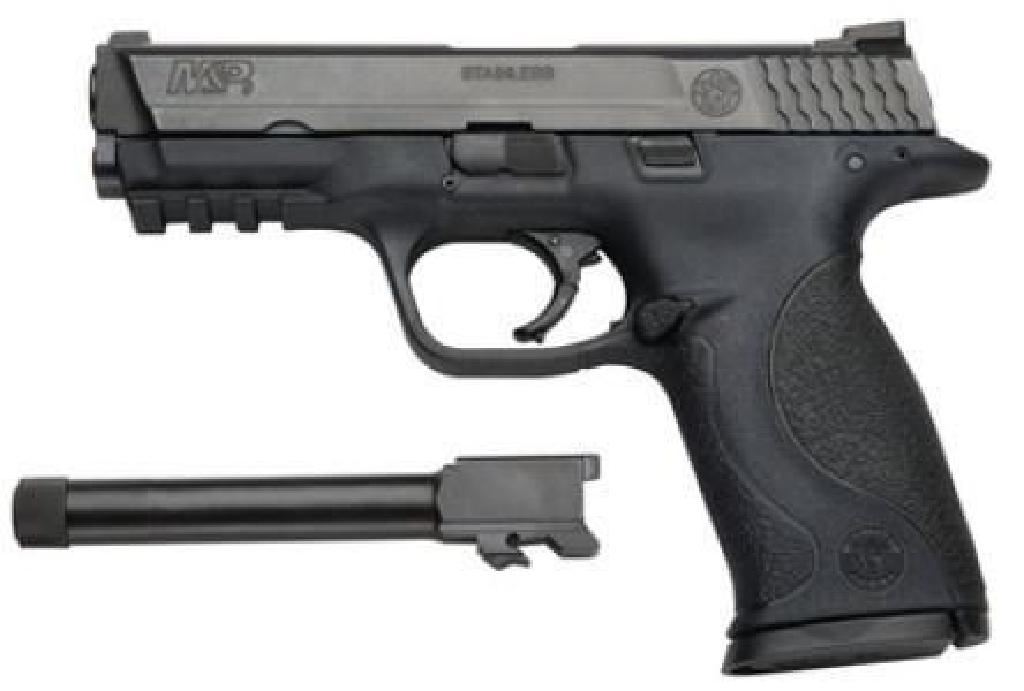 FAMILY:M&P Series MODEL:M&P9 Threaded Barrel Kit TYPE:Semi-Auto Pistol ACTION:Double Action Only FINISH:Black Melonite STOCK/FRAME:Polymer Frame STOCK/GRIPS:Black Polymer SPC FEATURE:Threaded Barrel Model CALIBER/GAUGE:9mm CAPACITY:17+1 BARREL:4.25" SIGHTS:White Dot Dovetail ADDL INFO:Extra Threaded Barrel ADDL INFO:3 Interchangable Backstraps