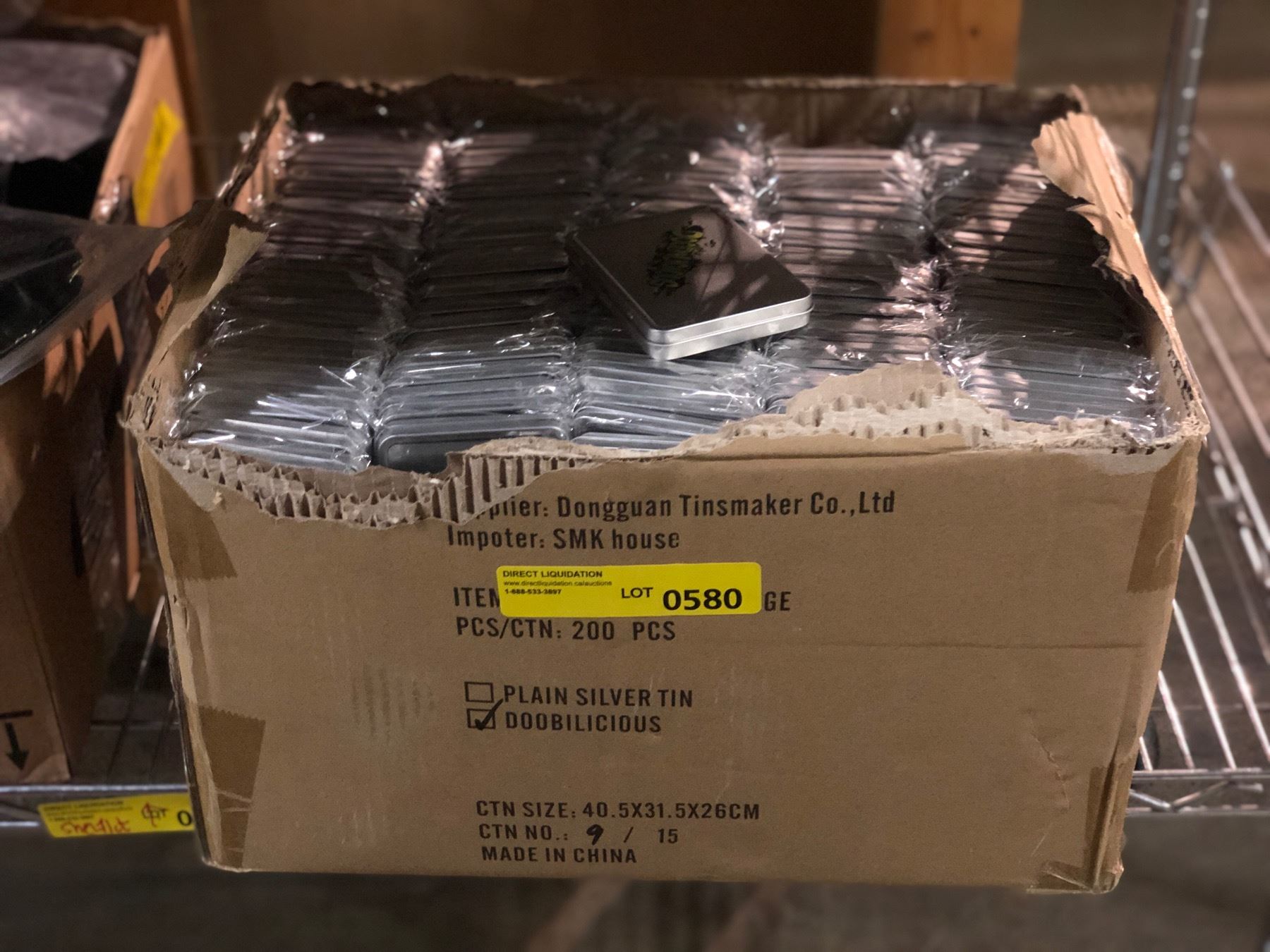 NEW - SMOKE SHOP box full of NEW metals tins - approx. 200 pieces