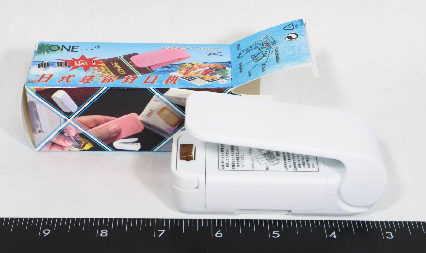 USES 3 AA BATTERIES (NOT INCLUDED). WORKS BY HEATING THE PLASTIC OF YOUR SNACK BAG AND MELTING IT TO CREATE A SEAL