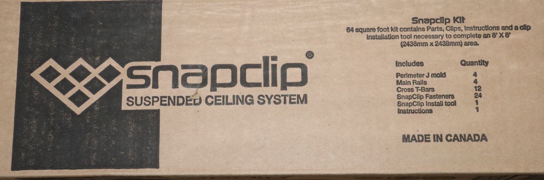 BOX DOES 64 SQUARE FEET. INCLUDES ALL PARTS, CLIPS, INSTRUCTIONS, TO COMPLETE AN 8' X 8' AREA. DOES NOT INCLUDE CEILING TILES, JUST THE FRAMING/ SUPPORT FOR TILES