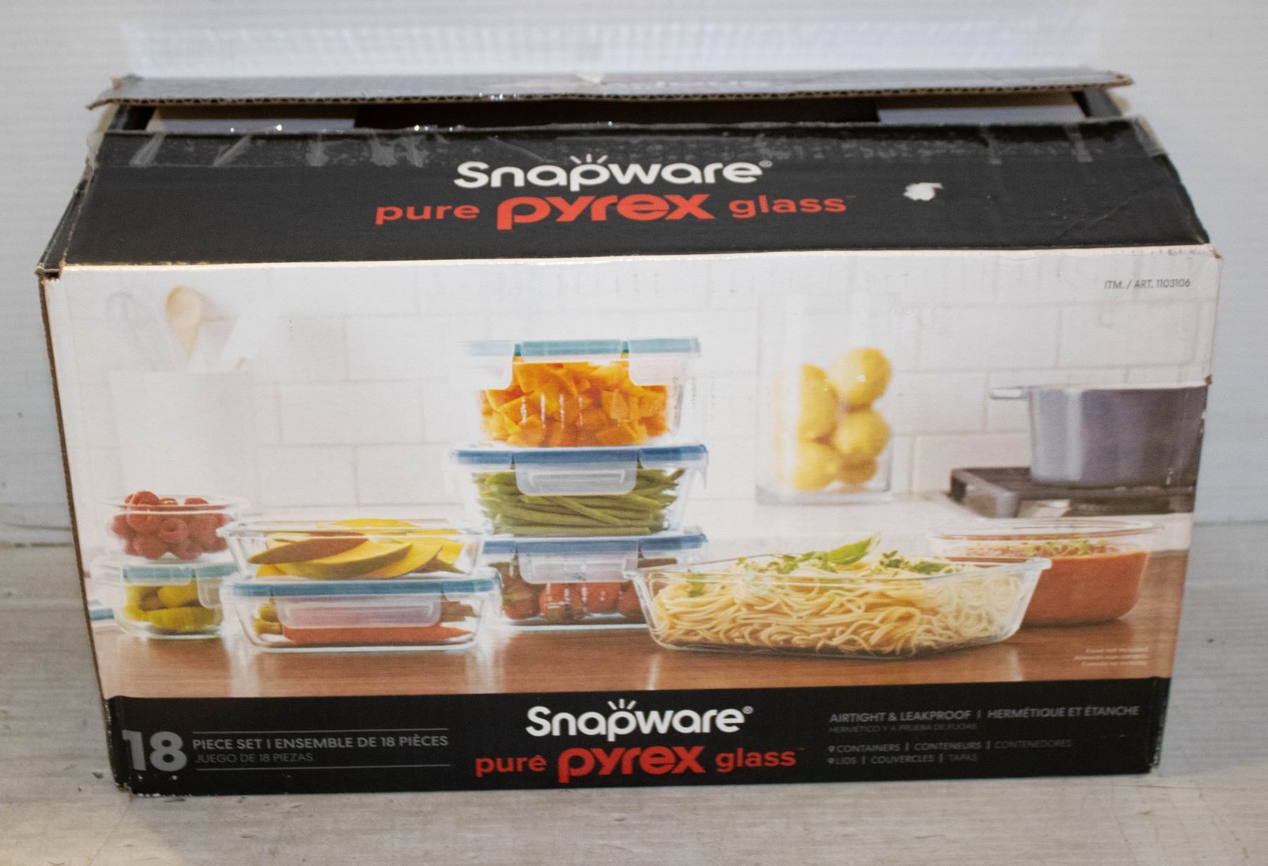 FOOD STORAGE SET THE SNAPWARE SET IS MADE OF PYREX TEMPERED GLASS, WHICH IS SAFE TO USE IN BOTH THE MICROWAVE AND OVEN. THE LIDS ARE AIRTIGHT TO KEEP FOOD FRESHER.