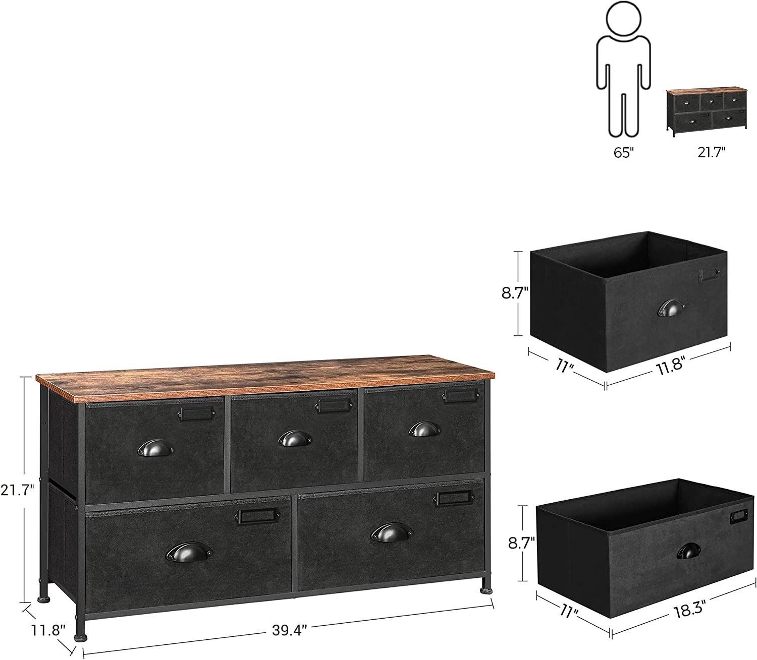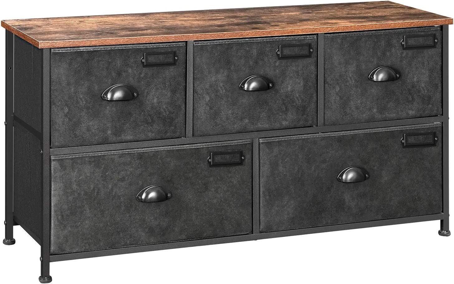 NEW SONGMICS FABRIC 5 DRAWER DRESSER, RUSTIC BROWN