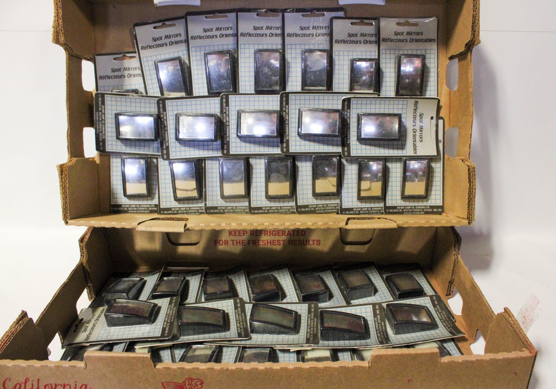 NEW SPOT MIRRORS. QTY: 38 (2 FLATS OF 19)