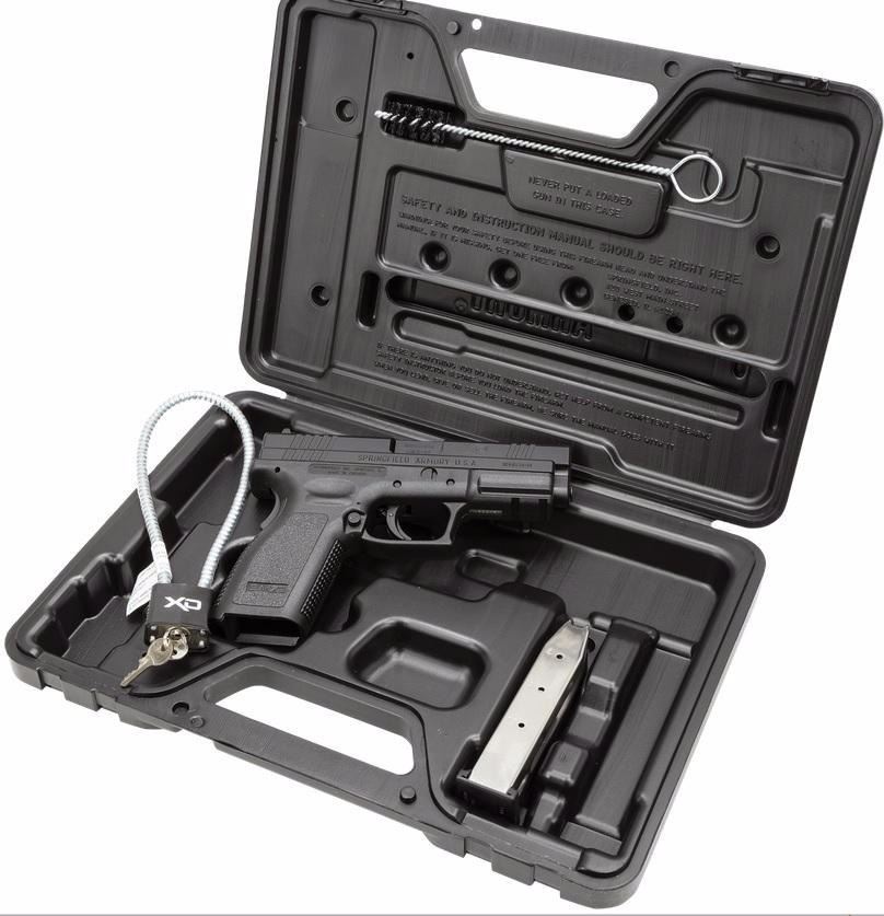 SFXD9101HC PRODUCT DETAILS FAMILY:XD Series MODEL:XD Service Essentials Package TYPE:Semi-Auto Pistol ACTION:Double Action Only FINISH:Black STOCK/FRAME:Polymer Frame STOCK/GRIPS:Black Polymer CALIBER/GAUGE:9mm CAPACITY:16+1 # OF MAGS:1 MAGAZINE DESC:16 rd. BARREL:4" OVERALL LENGTH:7.3" SIGHTS:3-Dot Sights ADDL INFO:Cable Lock ADDL INFO:Bore Brush ADDL INFO:Pistol Case