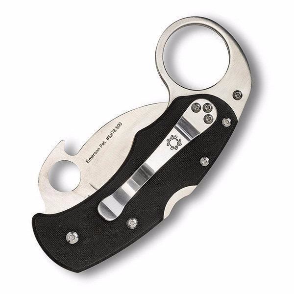 The Karahawk is an evolved folding version of the Southeast Asian karambit. Its VG-10 steel hawkbill blade is outfitted with Emerson's patented Wave Opening Feature along with a thumb hole, so opening is simple and fast. The black G-10 handle has stainless steel liners and a strong back lock mechanism. The Karahawk has a reversible tip-up carry pocket clip. The handle features a ring at the back end to facilitate traditional karambit manipulation techniques and is sized to keep the knife compact and easy to carry. Features Blade Length: 2.35 inch Overall Length: 6.5 inch Blade Material: VG10 Handle Material: G10 Weight: 3.80 oz. Includes: Tip-Up Pocket Clip