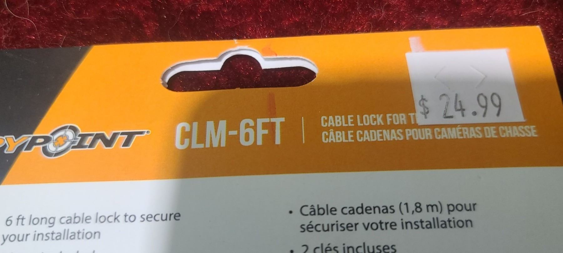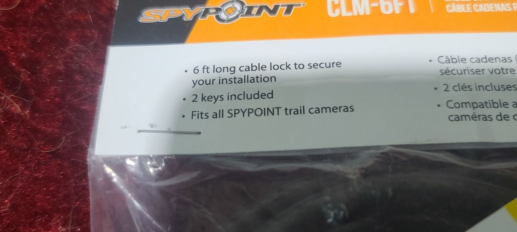 NEW SPYPOINT 6 FT LONG SECURITY CABLE LOCK C/W 2 KEYS