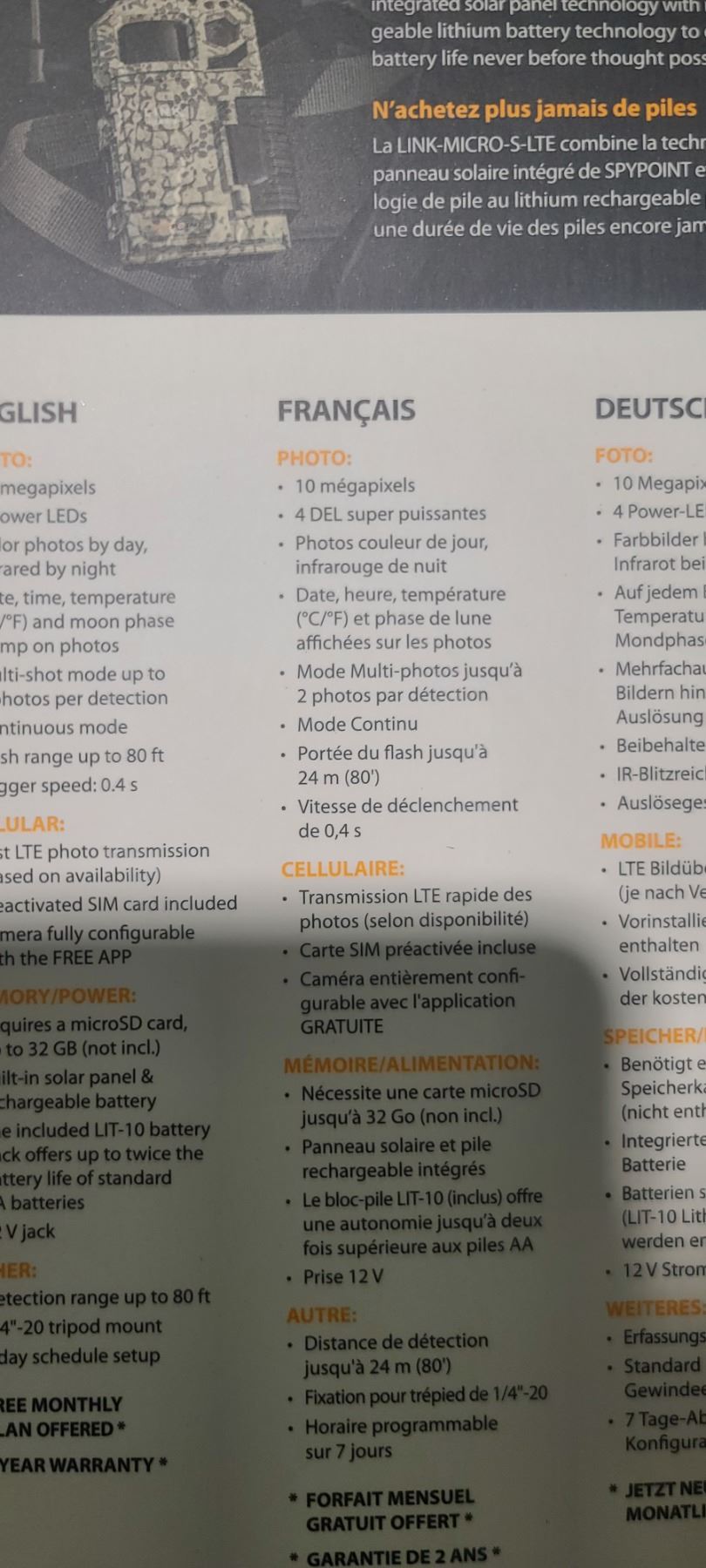 NEW SPYPOINT LINK MICRO SOLAR CELLULAR TRAIL CAMERA C/W RECHARGEABLE BATTERY