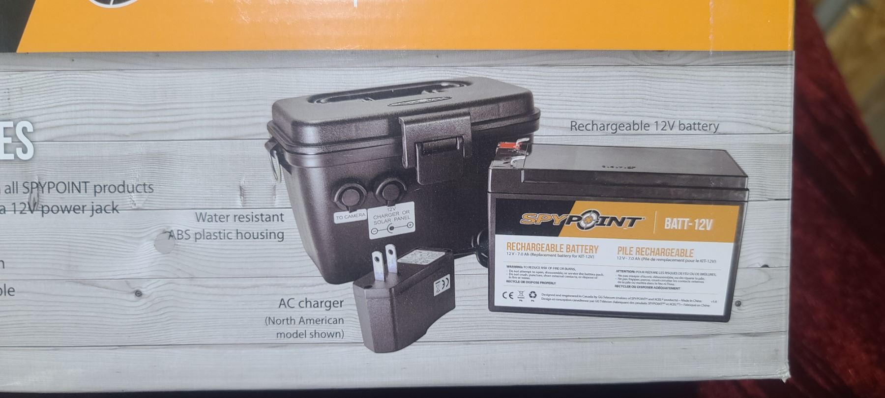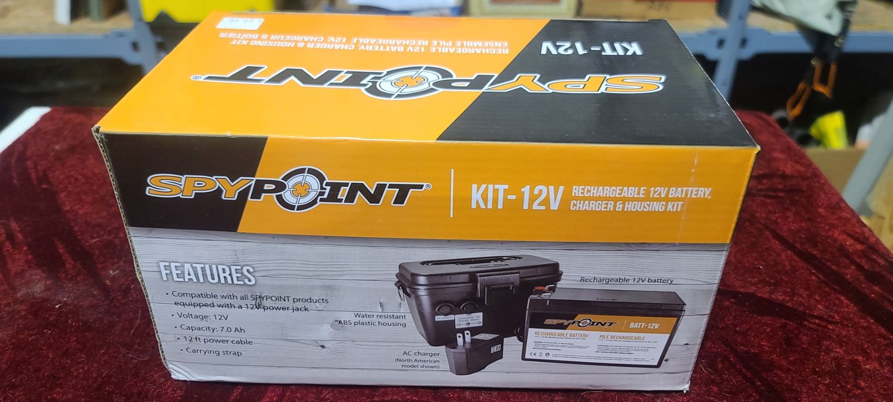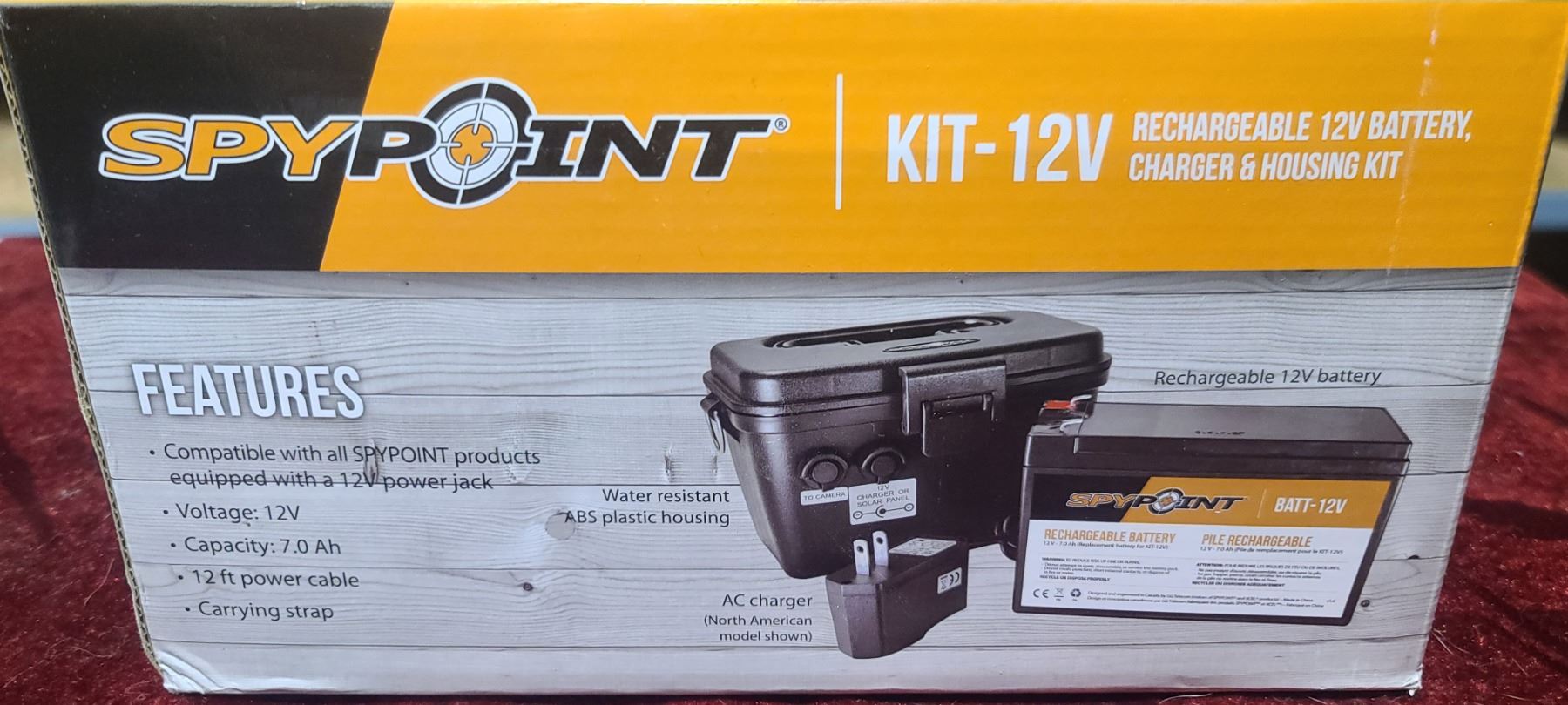 NEW SPYPOINT RECHARGEABLE 12V LONG LIFE BATTERY, CHARGER AND HOUSING KIT