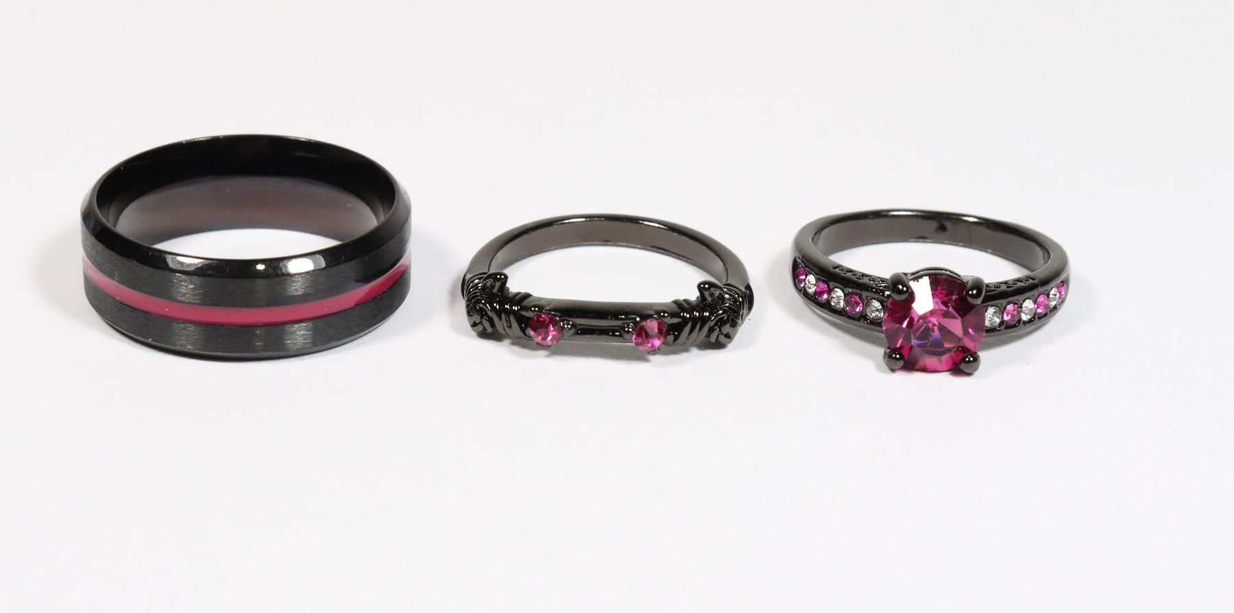 STACKING RINGS RHINESTONE ACCENTS. SIZE 10 FUCHSIA AND BLACK BAND RING. FASHION JEWELRY