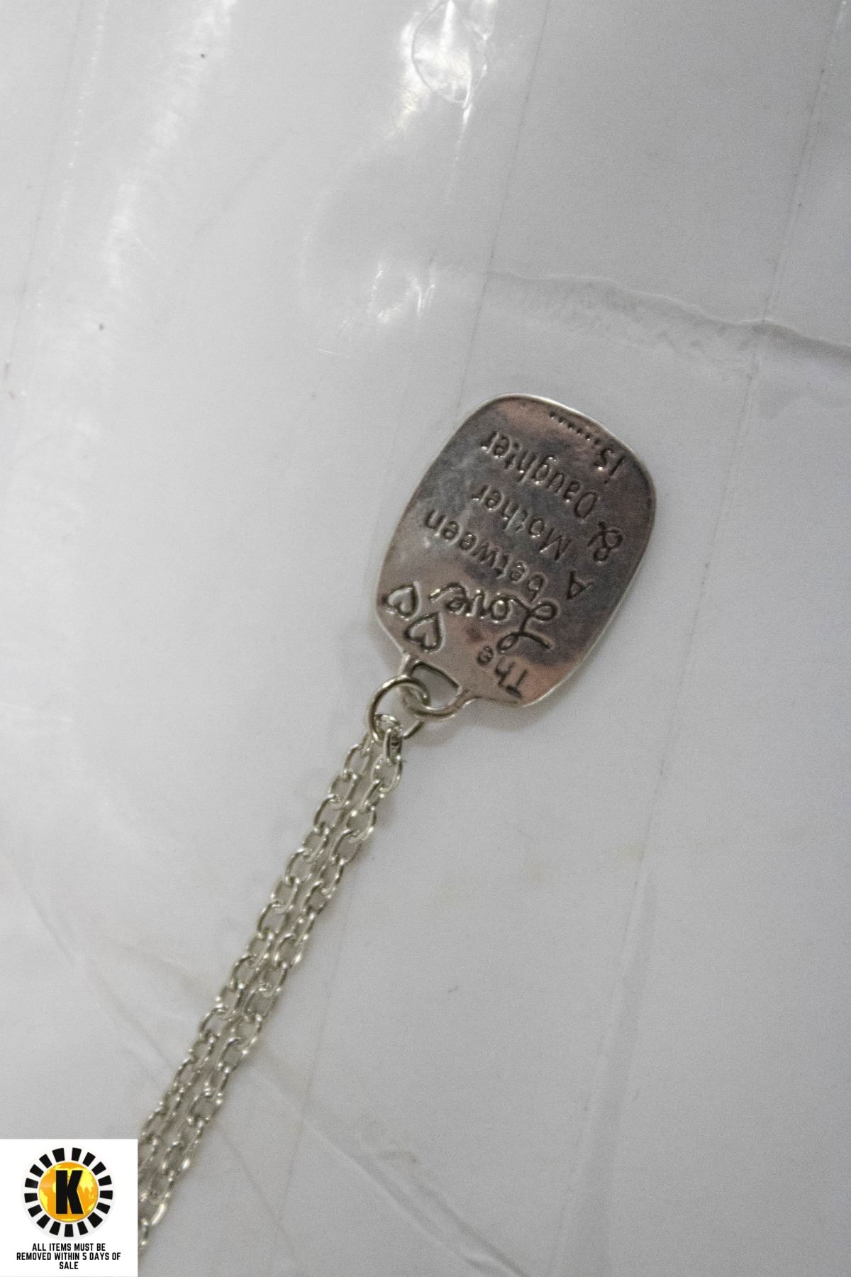 NECKLACE "THE LOVE BETWEEN MOTHER & DAUGHTER IS......COMPLICATED, NOISY, TENDER, STRONG, AFFECTIONATE, FUNNY & FOREVER" **ALL ITEMS MUST BE REMOVED BY 5PM SATURDAY, NOVEMBER 4TH 2023. ALL REMAINING ITEMS WILL BE SUBJECT TO A $6.00 PER DAY STORAGE CHARGE. ANY ITEMS REMAINING AFTER MONDAY, NOVEMBER 18TH, 2023 WILL BE CONSIDERED FORFEITED. NO REFUNDS WILL BE ISSUED FOR FORFEITED ITEMS. TO SCHEDULE A PICK UP APPOINTMENT CLICK HERE