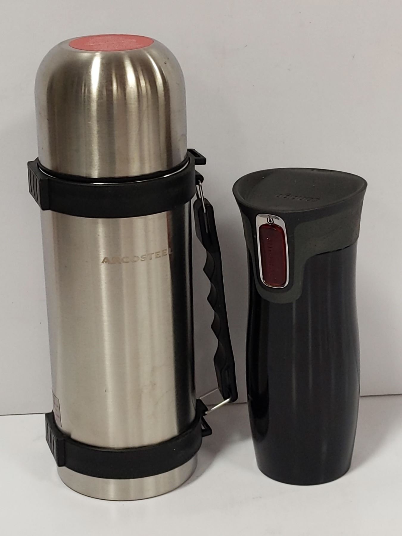 NEW STAINLESS THERMOS WITH NEW TRAVEL MUG