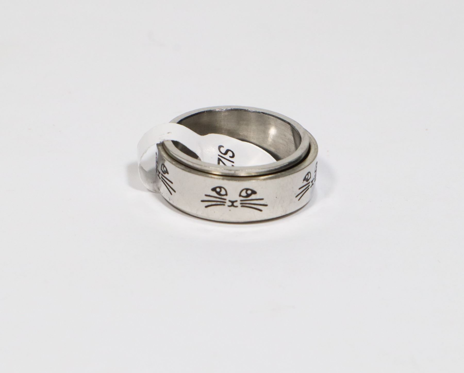 NEW STEEL CAT FACE FIDGET SPINNER RING SIZE 7