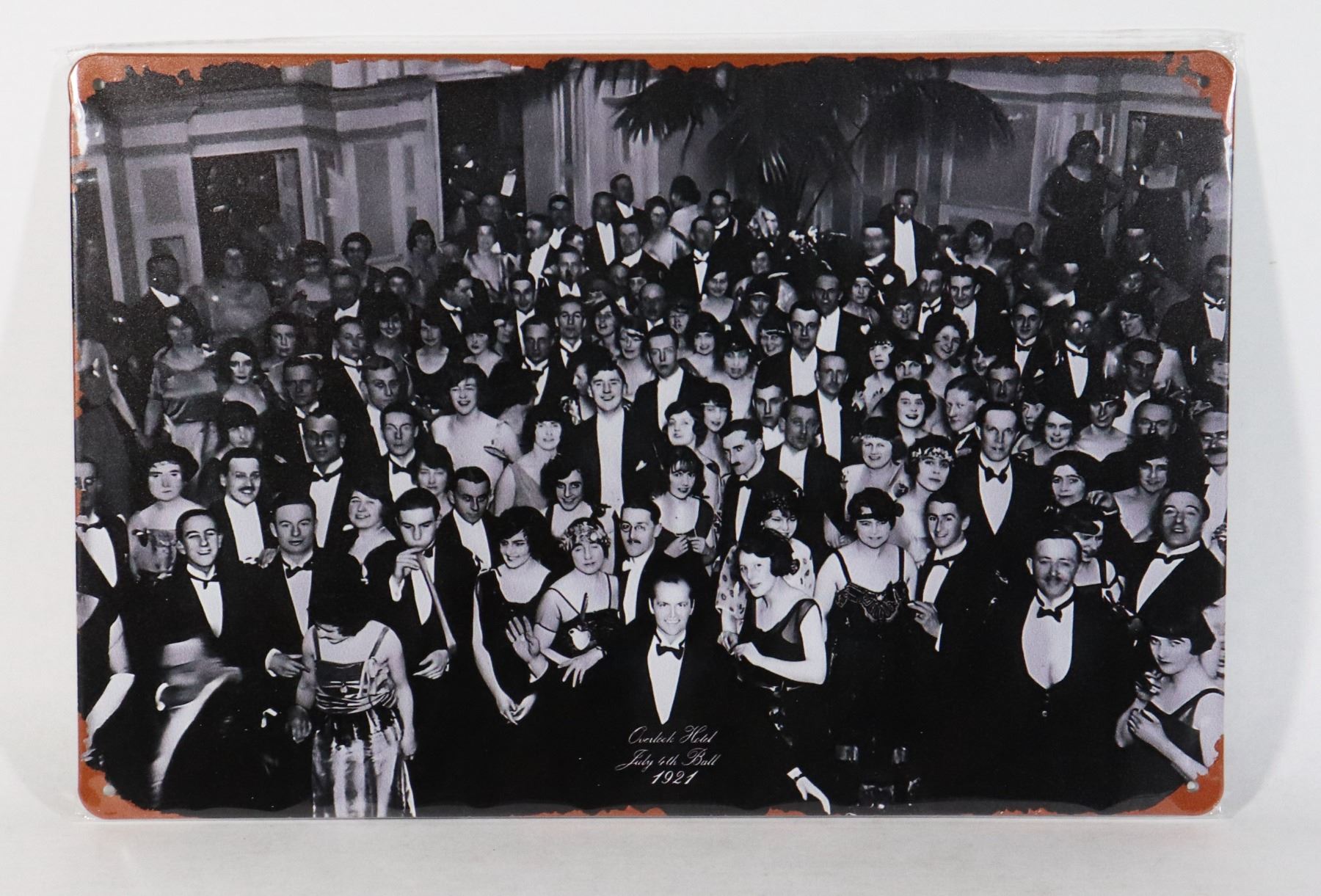 JULY 4TH BALL PHOTO REPLICA METAL SIGN. APPROX 12"X8". PRE-DRILLED HOLES FOR HANGING