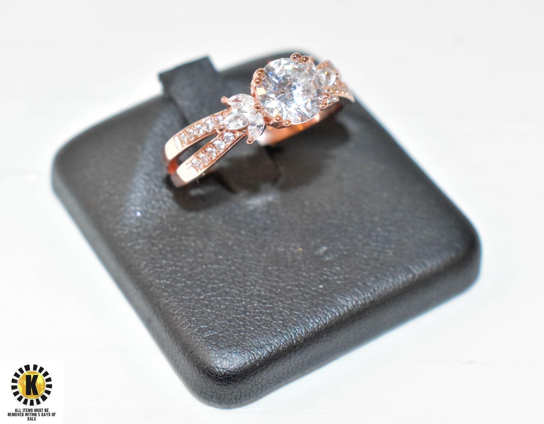 MOISSANITE & SEMI PRECIOUS STONE RING SIZE 8 ON RING STAND.
