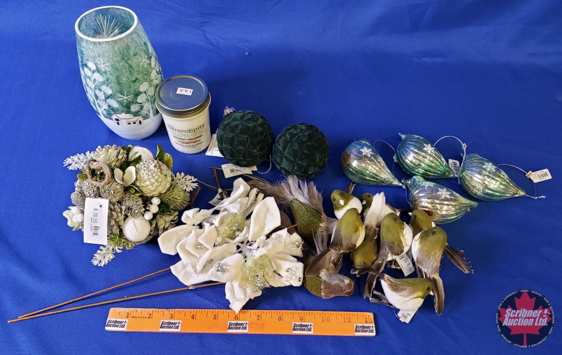 NEW STOCK: Combo Décor Group ~ Green Theme (Incl. Serendipity Candle; Bulbs; Birds; etc) (SEE PICS!)