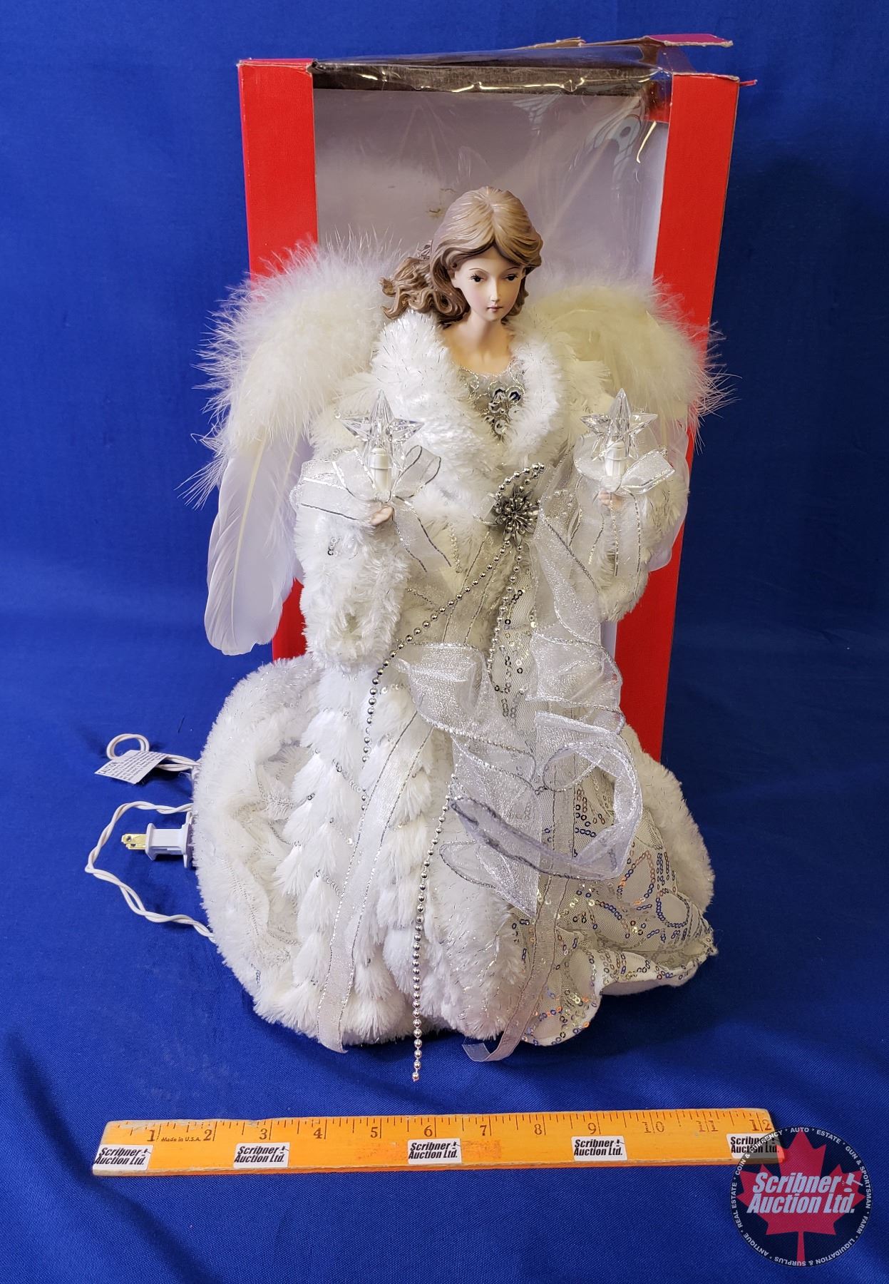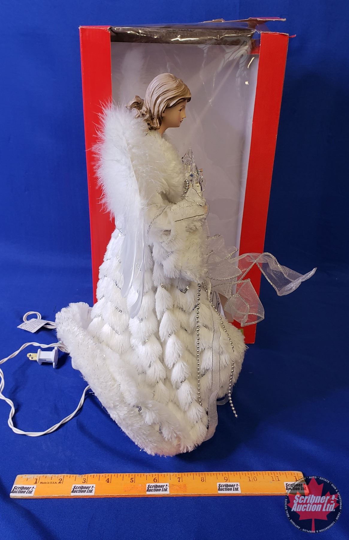 NEW STOCK: Tree Topper Angel (White/Silver) (NIB) (Plugs In) (Box Measures: 18"H x 10"W x 6"D) (SEE PICS!)