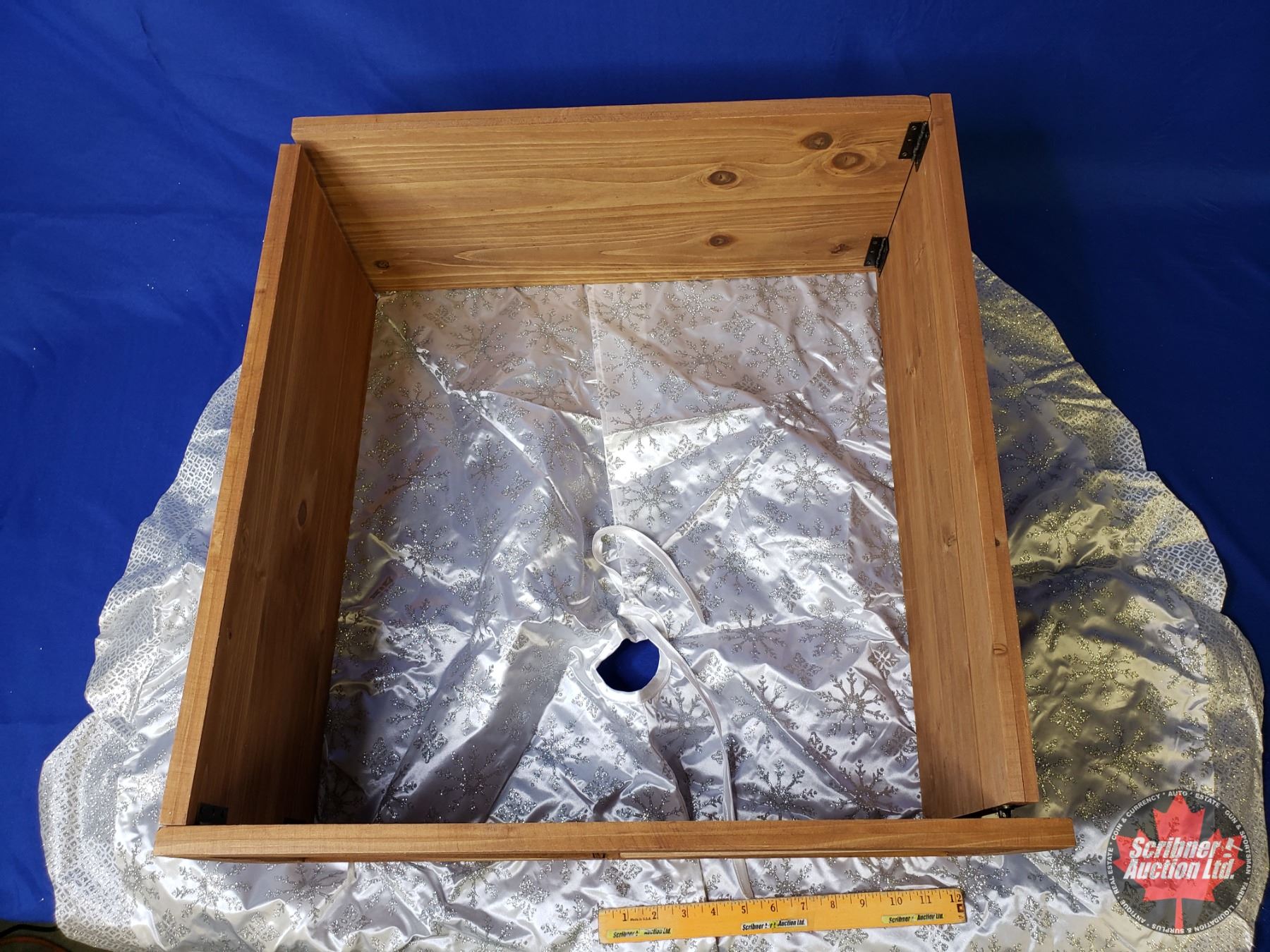 NEW STOCK: Wood Tree Surround & Tree Skirt (Silver/White) (Surround Measures: 10"H x 24"W x 24"D) (SEE PICS!)
