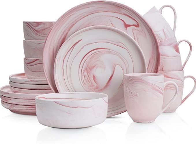SET. PINK MARBLE SWIRL DESIGN. MSRP $140. AMZ SES **ALL ITEMS MUST BE REMOVED BY 5PM SATURDAY, APRIL 15TH 2023. ALL REMAINING ITEMS WILL BE SUBJECT TO A $6.00 PER DAY STORAGE CHARGE. ANY ITEMS REMAINING AFTER MONDAY, APRIL 30TH, 2023 WILL BE CONSIDERED FORFEITED. NO REFUNDS WILL BE ISSUED FOR FORFEITED ITEMS. TO SCHEDULE A PICK UP APPOINTMENT CLICK HERE