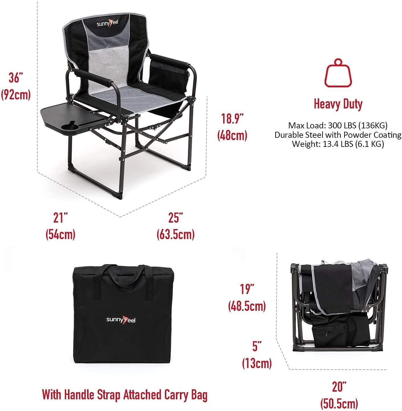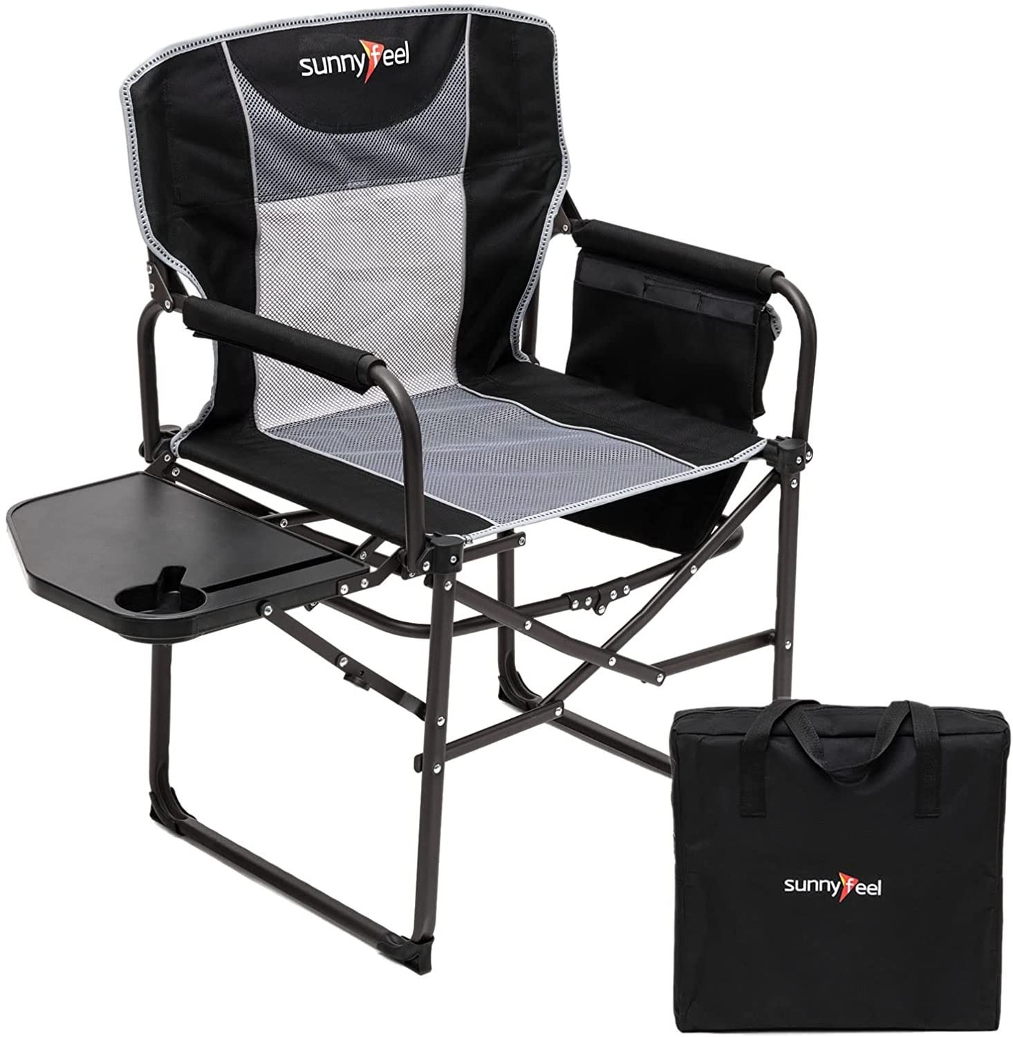 NEW SUNNYFEEL CAMPING/BEACH CHAIR WITH SIDE TABLE AND STORAGE BAG, FOLDABLE AND HEAVY DUTY, CARRYING