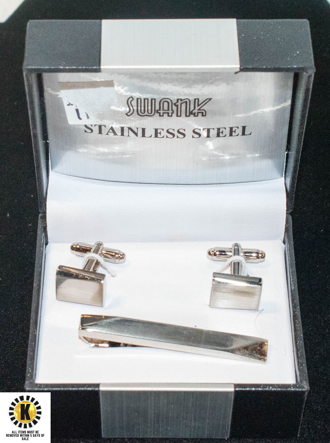 NEW SWANK ST. STEEL CUFFLINK & TIE PIN SET