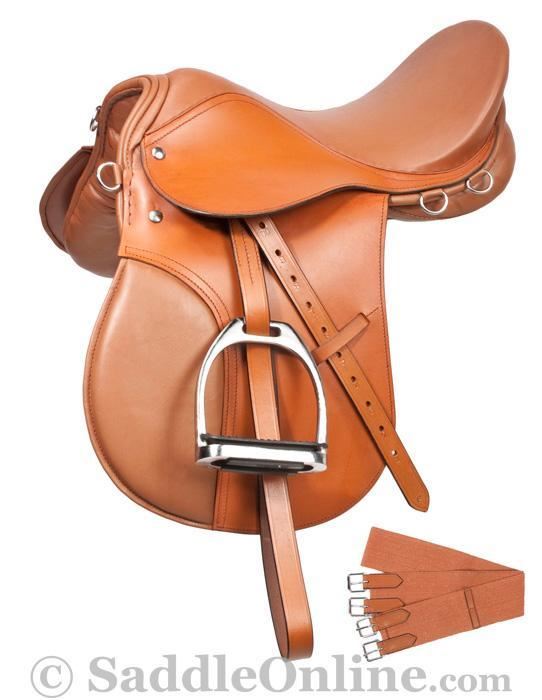 Specs Color: Tan Deep Padded leather seat Padded Knee rolls Girth with Heavy Duty Buckles with rollers Stirrup Leathers Stirrup Irons and Pads Measurements Gullet: 6.5" Medium Tree Seat: 16, 17, 18 Flap: 15" Girth Size: 50 Stirrup Leather Length: 57'', with 12 holes 1'' apart Stirrup Iron Width: 4.5''' Rein Length: 109''