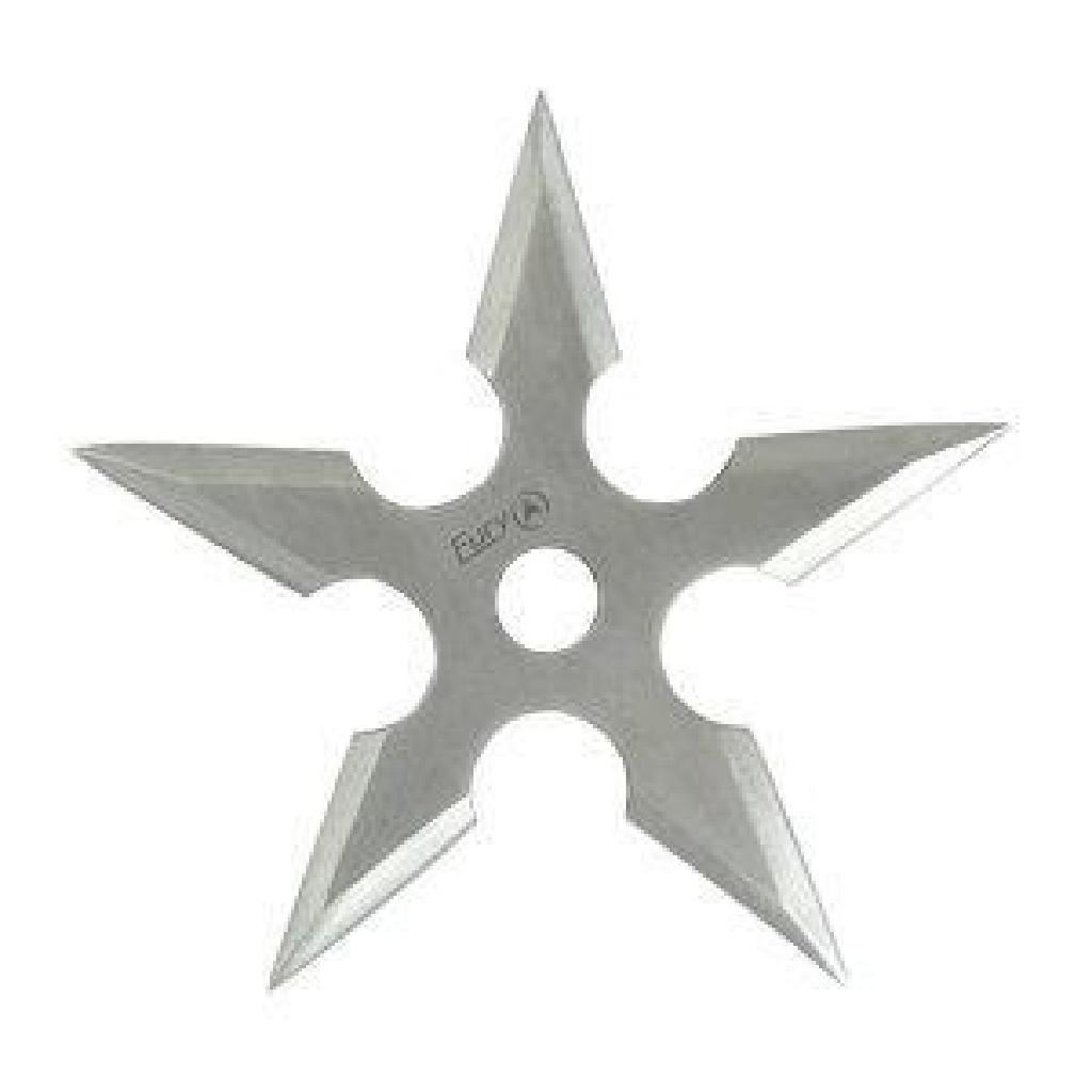 Short Description Shuriken Penta Point Thrower with Pouch Long Description Shuriken 3.75" 5 Points Center Hole, Five Point Dual Edge Design, Hole in Center for improved grip, 3mm Thick w/pouch, 2 oz