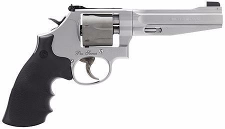 Mfr Items:Smith & Wesson Category:REVOLVERS Action:Single/Double Caliber:9mm Barrel Length:5.0" Capacity:7 Hammer Style:Spurred Grips:Black Synthetic Sights:Patridge Front, Adjustable Rear Weight:34.9 oz Frame Description:Stainless Steel Cylinder Finish:Titanium Barrel Finish:Stainless OAL:10.5"