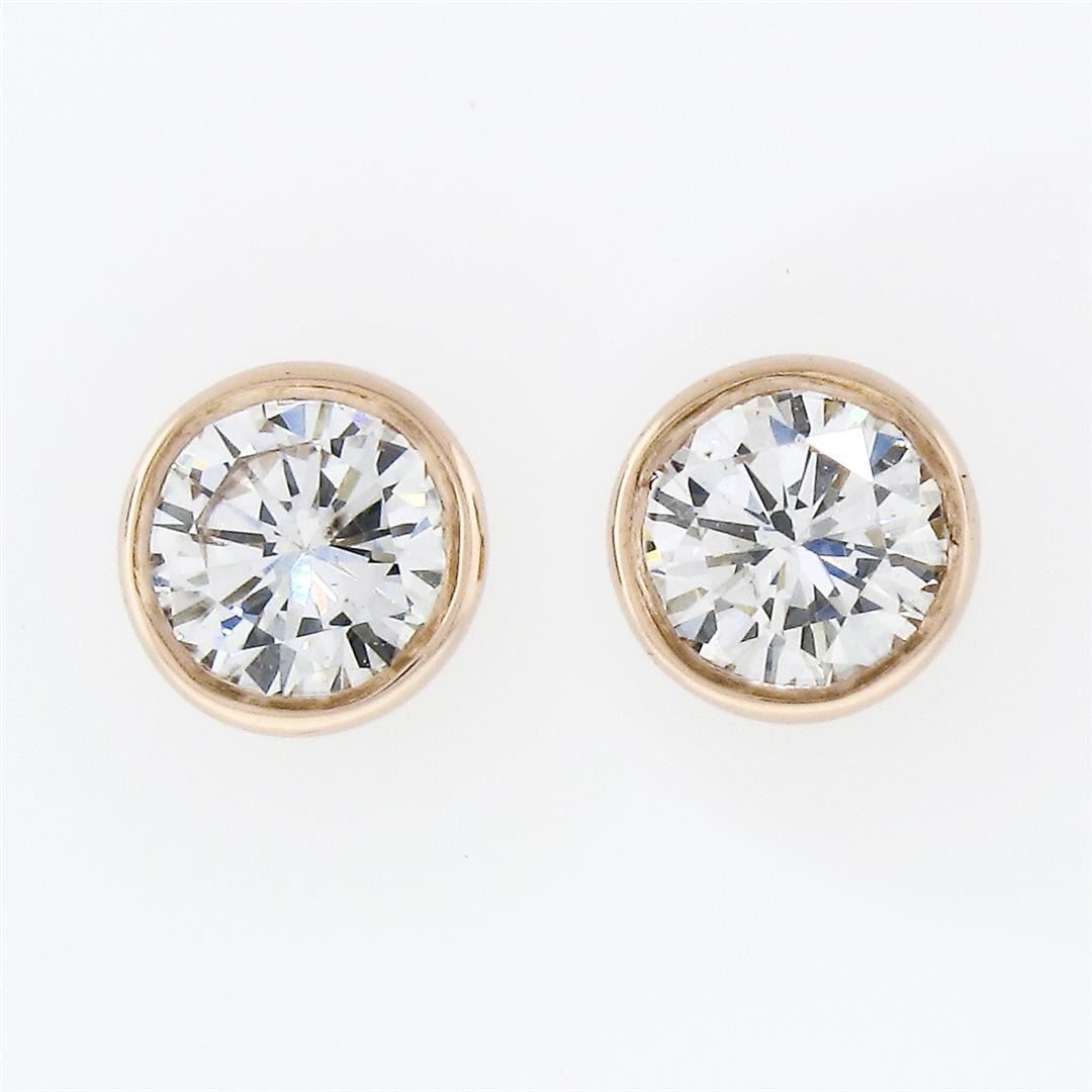 A new solid 14k rose gold stud earrings, with 2 round brilliant cut natural diamonds (F/G- VS1/VS2; 0.42ctw). The earrings measure approximately 4.45mm in diameter and weigh a total of 0.71 grams.