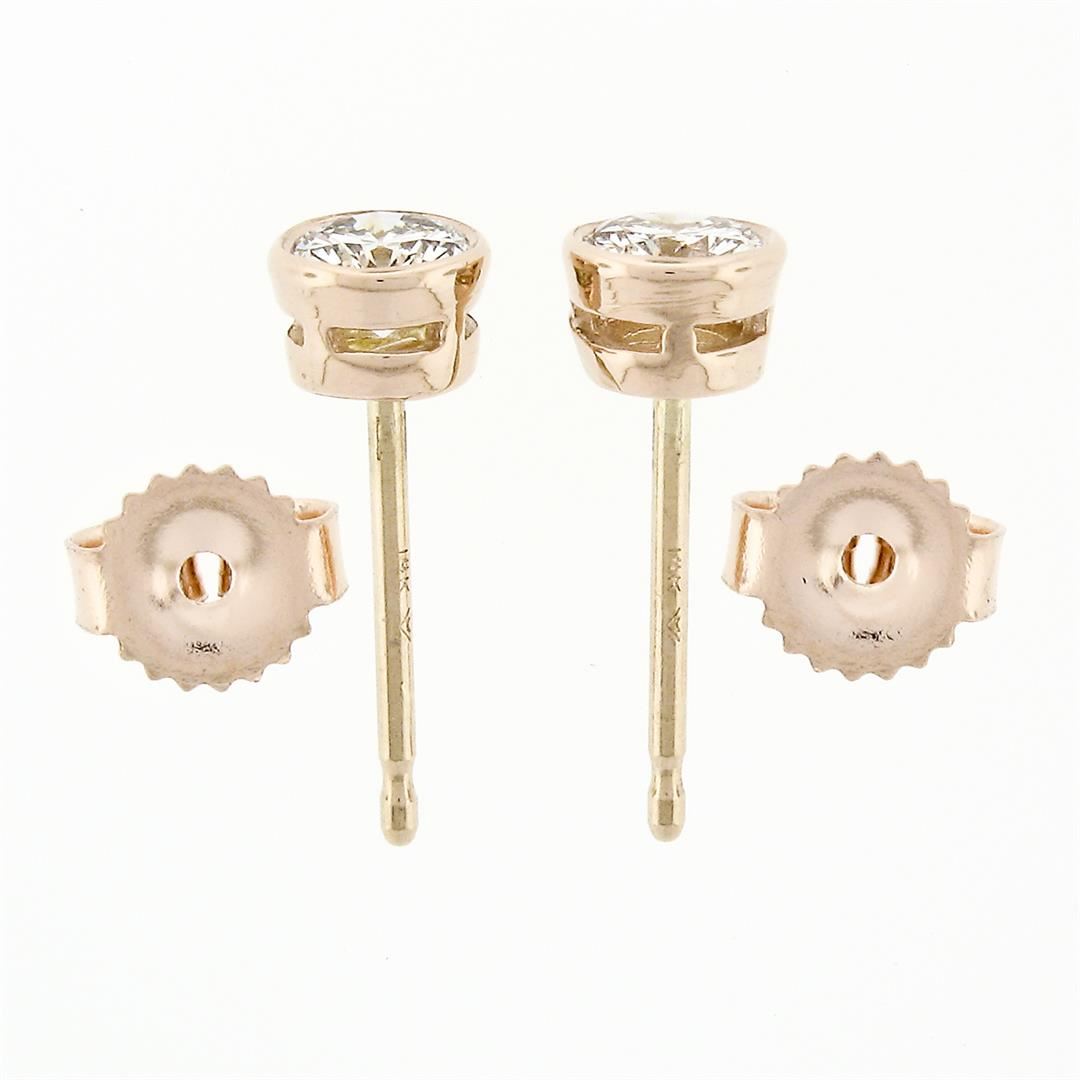 A new solid 14k rose gold stud earrings, with 2 round brilliant cut natural diamonds (F/G- VS1/VS2; 0.42ctw). The earrings measure approximately 4.45mm in diameter and weigh a total of 0.71 grams.